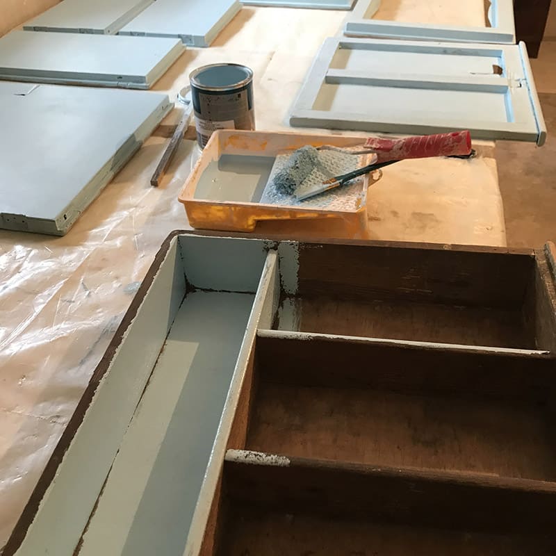 Jeżeli zamierzamy uzyskać efekt kryjącej bieli to wystarczy, że mebel po prostu pomalujemy. Tak jak pisałam w artykule o malowaniu krzeseł https://emeraldgreen.pl/latwe-i-szybkie-metamorfozy/ mebel przed malowaniem wystarczy odtłuścić czyli umyć płynem do mycia naczyń, ewentualnie denaturatem. Jeżeli malowany przedmiot nie jest bardzo zniszczony, a stara farba się nie łuszczy, można od razu malować odpowiednią farbą. Ja używam do tych celów białej farby 3v3 (do mebli kuchennych lub podłóg i schodów) – jest bardzo trwała i odporna, a także nie żółknie z czasem. Narzędzia można myć w wodzie.