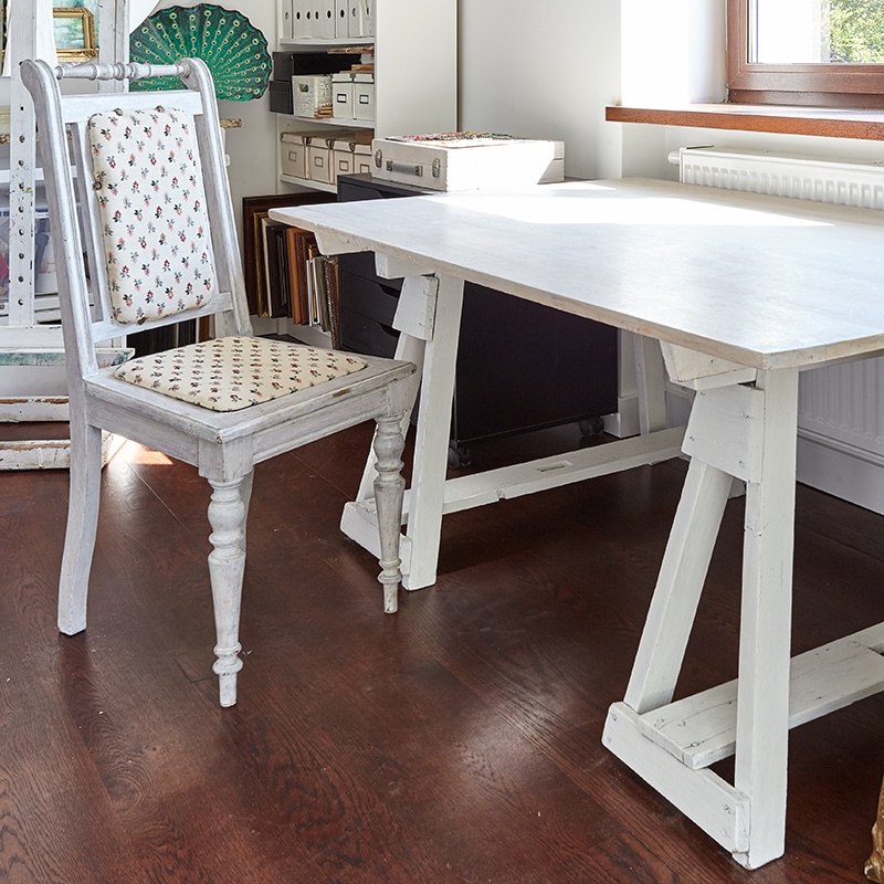 Zdecydowanie trudniej jest uzyskać efekt bielonego drewna. Poddany takiej obróbce mebel musi być oczywiście drewniany. Na początek trzeba pozbyć się wszystkich starych powłok farb. Możemy zrobić to na kilka sposobów: za pomocą odpowiednich preparatów do rozpuszczenia starych farb, nagrzewnicą i szpachelką lub tylko szlifując.