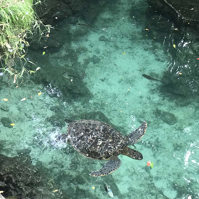 Pływanie z żółwiami morskimi to niesamowite doświadczenie. Można je tu karmić przygotowanymi przez personel glonami. Jeżeli nie jest się gościem hotelowym można opłacić 10 $ za wstęp i pływać do woli.