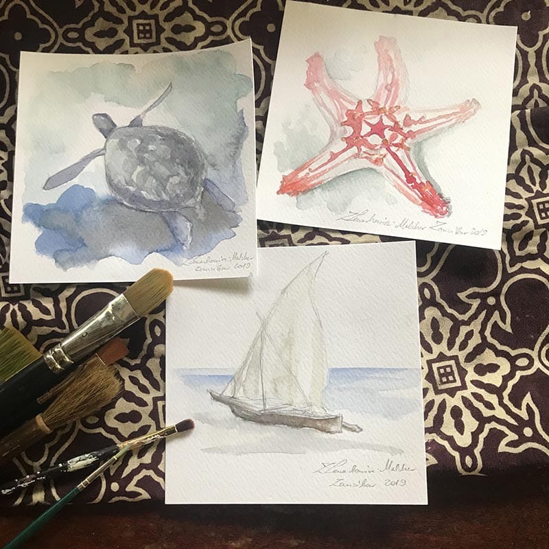 A to moje akwarelki malowane na plaży… Mam nadzieję, że Was zainspirują i również weźmiecie farbki i bloczek papieru w następną podróż! Taki mały zestaw można wziąć nawet do bagażu podręcznego.