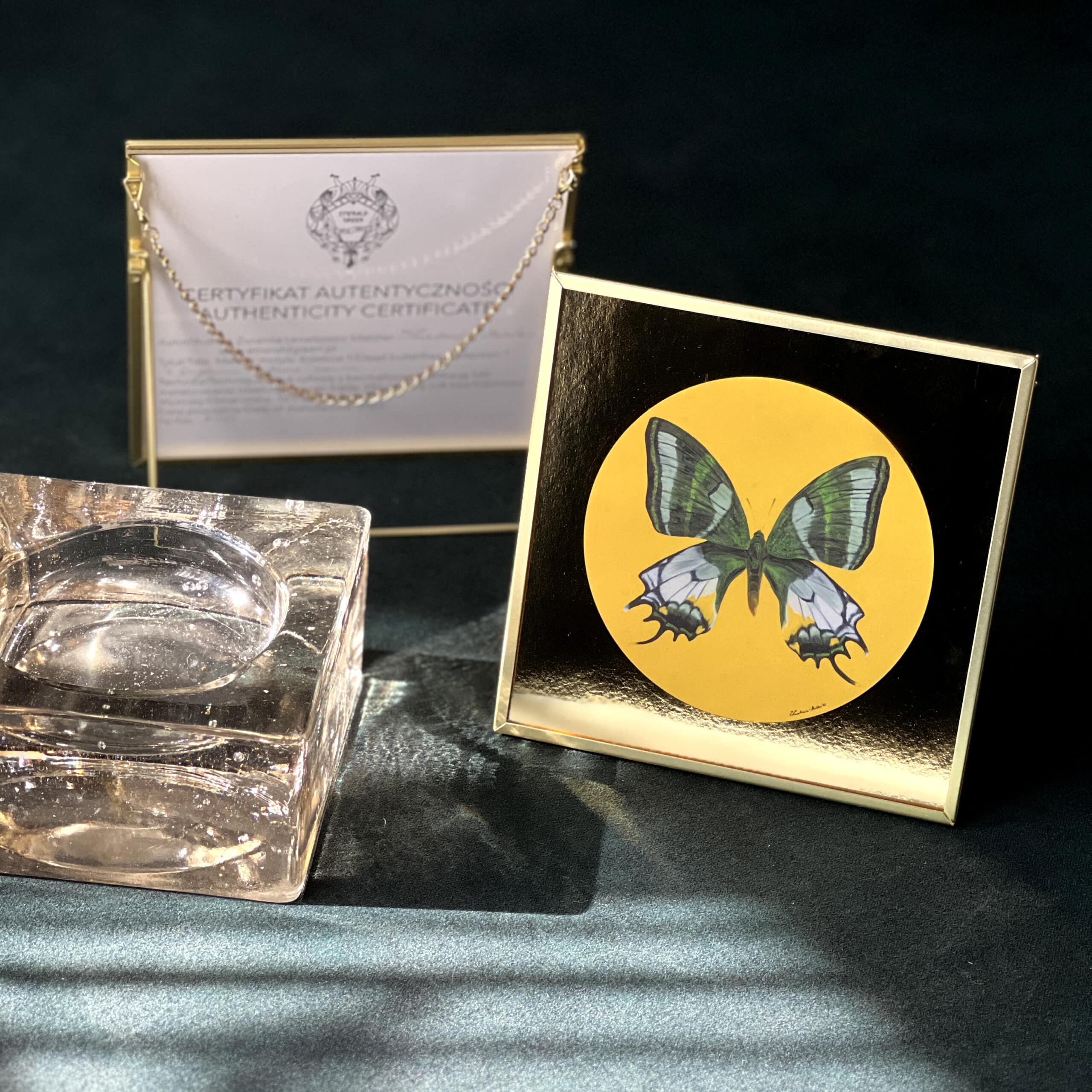 Zatrzymane w locie, jak w szklanej gablocie – motyle z kolekcji Motylarnia celebrują efemeryczność i poetyckie piękno. Druk na tle złotej folii tworzy efekt nowoczesnej iluminacji, a każdy obrazek to mikrokosmos zainspirowany światem entomologii i sztuki obserwacji.